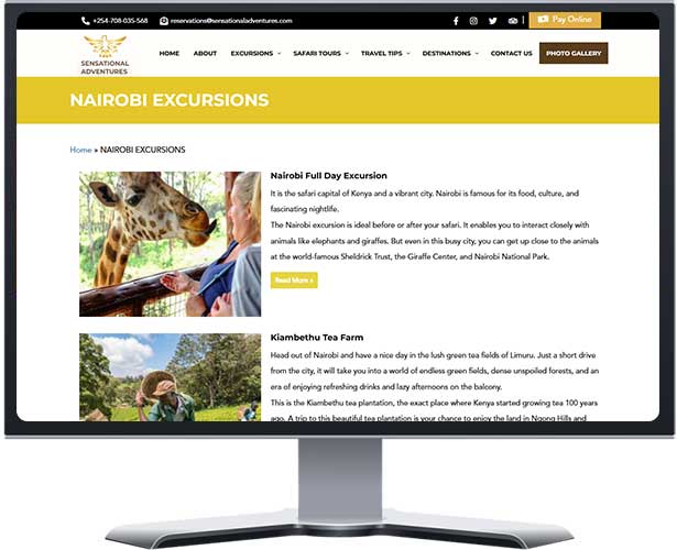 - User-Friendly Tour Navigation – A structured layout categorizing safari tours, beach vacations, and adventure expeditions.