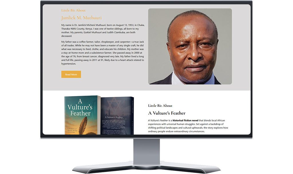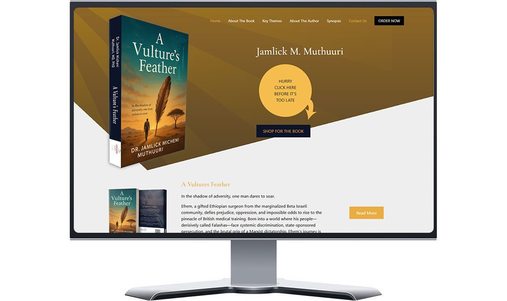 Vulture’s Feather is a literary project by Dr. Jamlick M. Muthuuri, telling the story of Efrem, a gifted Ethiopian surgeon from the marginalized Beta Israeli community. The book explores resilience, ambition, and triumph over systemic discrimination and political oppression. The client needed a digital platform to showcase the book, share the author’s story, and enable direct sales.