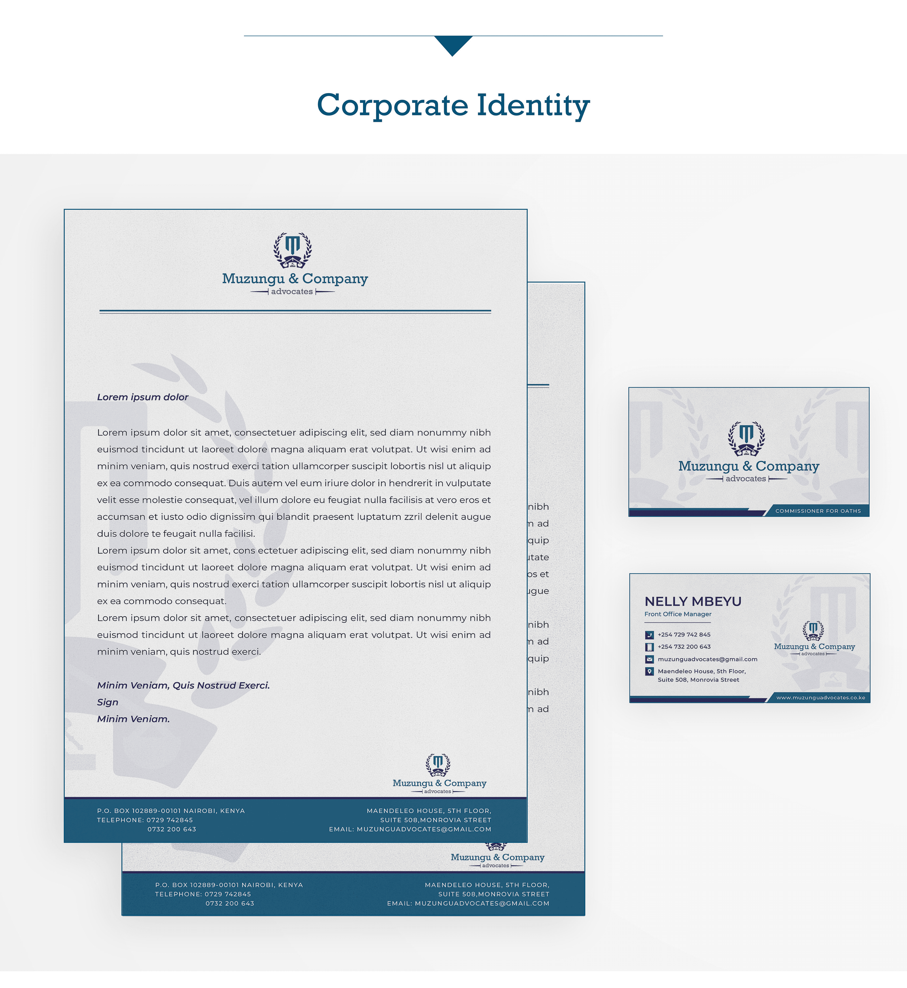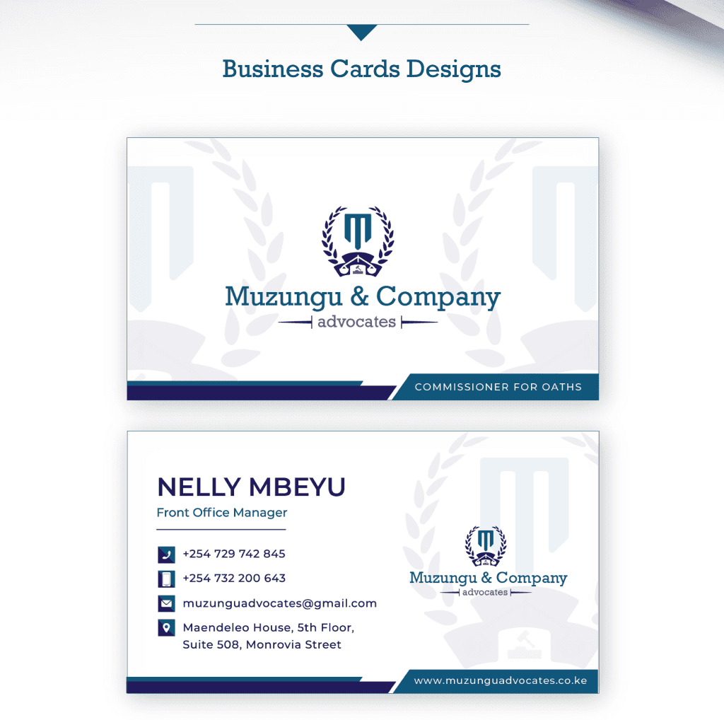 This design embodies the prestige and professionalism of Muzungu & Co. Advocates, presenting the law firm’s brand with a refined and authoritative visual identity.